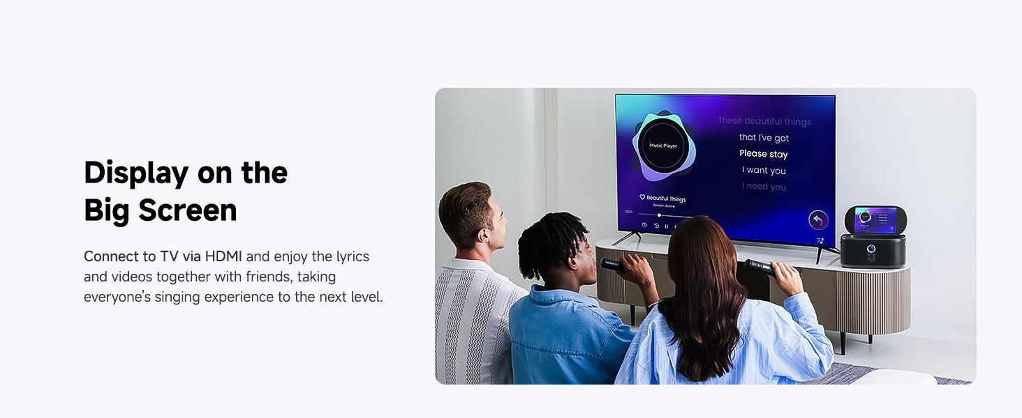 Connect to Wifi, open Youtube, Link to the big screen via HDMI, and enjoy music & movies with friends.